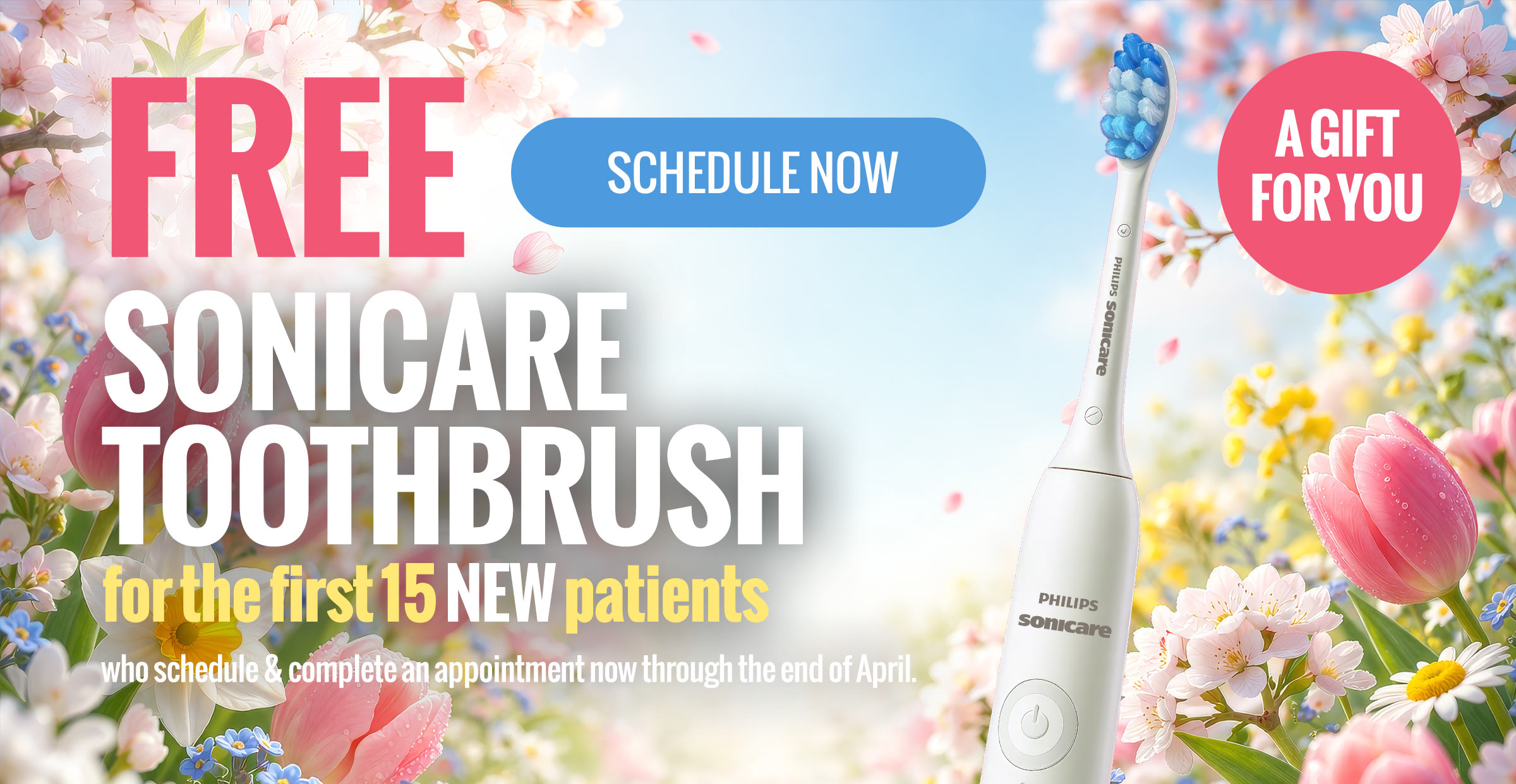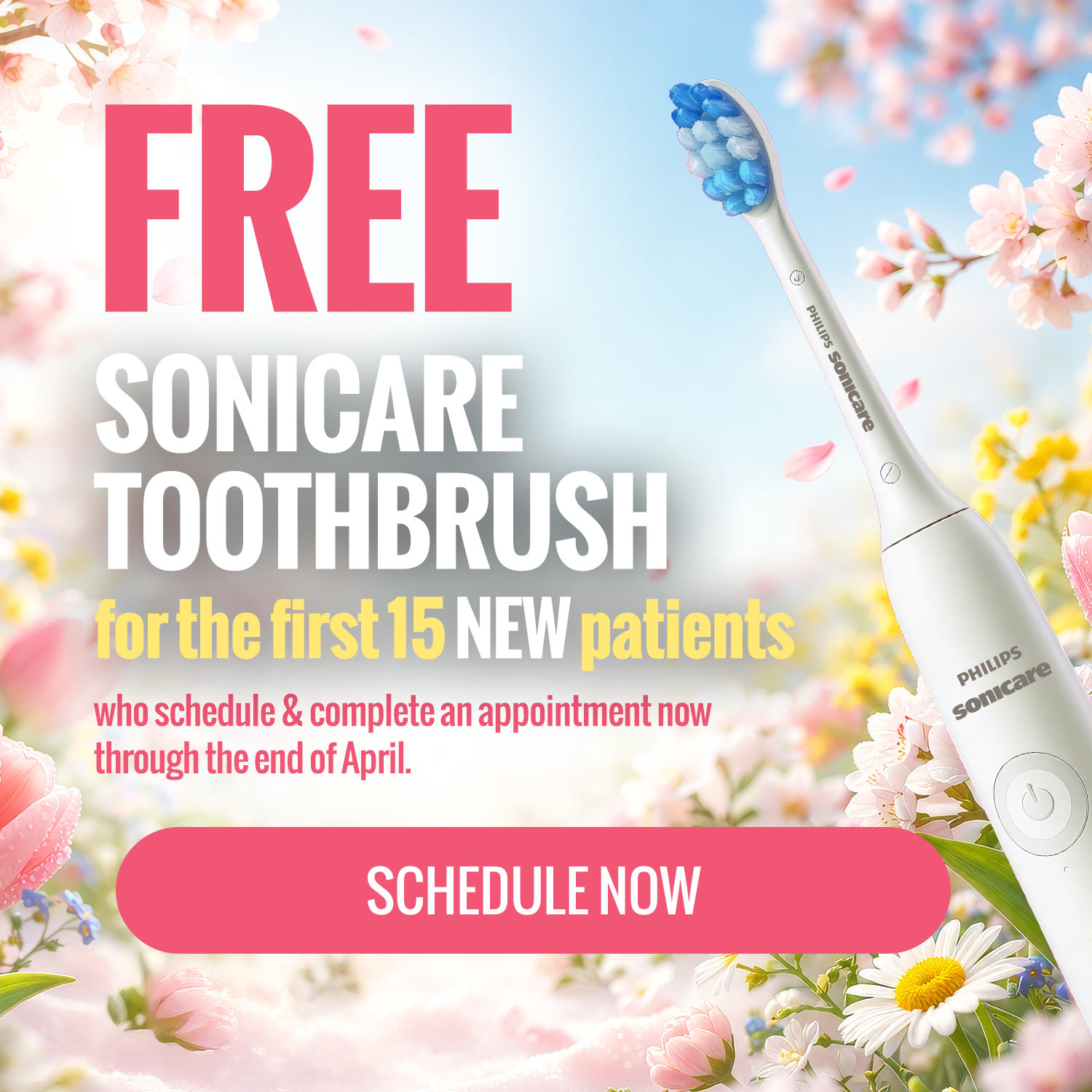 All new patients can get a FREE Sonicare toothbrush during the month of August 2024. Schedule now and mention this ad to get the deal!